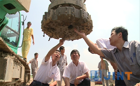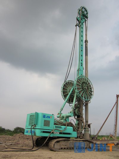 酒店桩基施工中,施工方发现坑口附近地下岩层硬度极高(抗压强度120Mpa以上),普通施工方法几乎不可能打到设计要求的32m桩孔深度。金泰SH25H钻机的进驻使不可能成为可能,钻进速度达到了每小时1米左右。