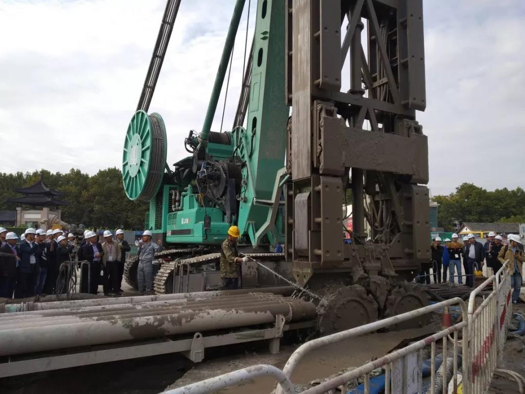 19日下午,在组委会的支持协助下,我公司组织了近百名参会专家客户到南京地铁7号线-莫愁湖站工地参观SX40双轮铣和SG60A液压抓斗工法演示。本次现场参观考察由我公司驻该项目技术服务负责人工法研究所副所长胡君军负责讲解。