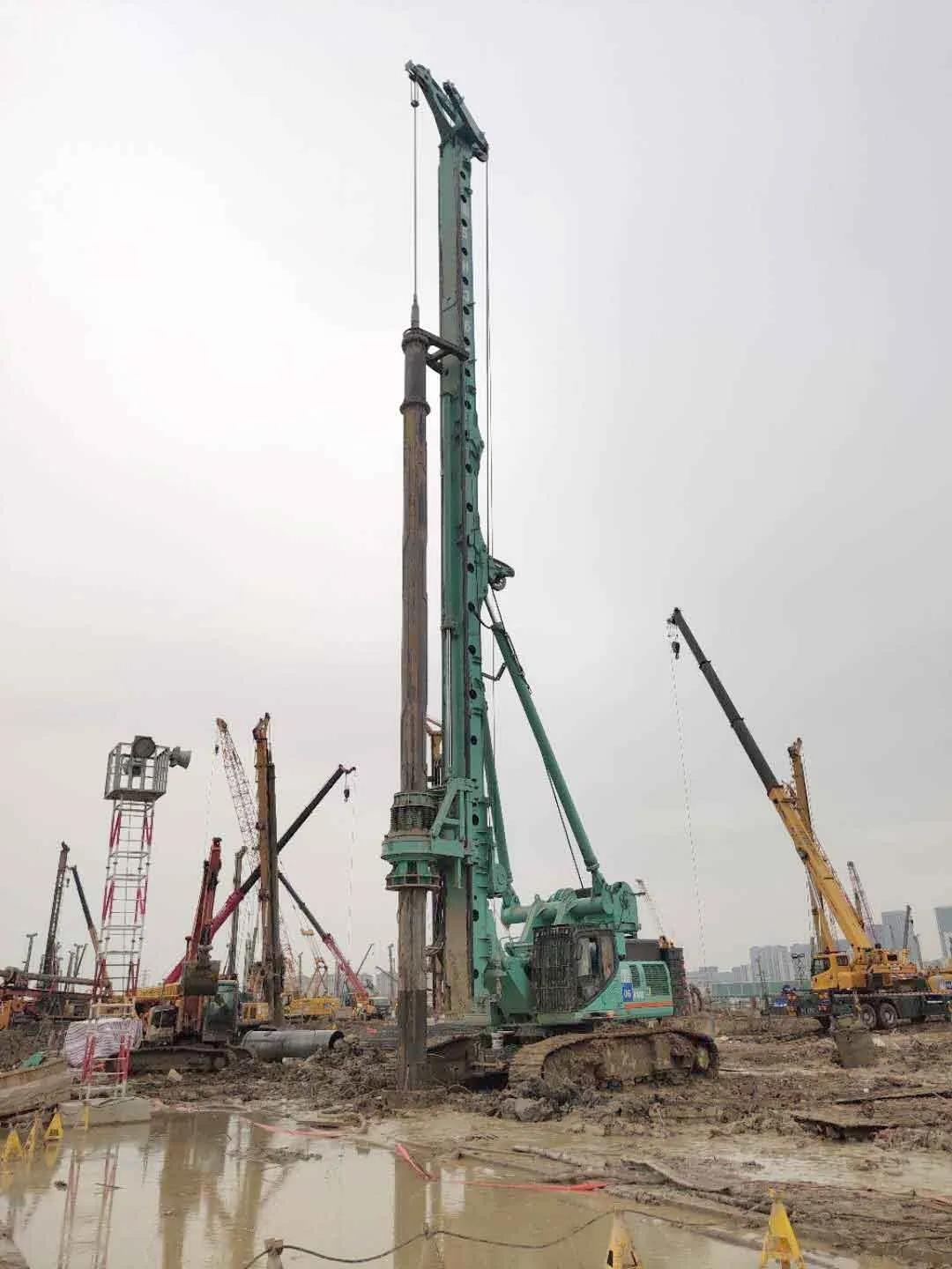 目前金泰SH36C多功能钻机正在杭州西站枢纽暨湖杭铁路项目24小时全天候施工,施工期间平均每五个小时完成一根径1米深53.5米桩。助力亚运会配套工程-杭州西站枢纽暨湖杭铁路项目能在2021年10月31日前如期完成。