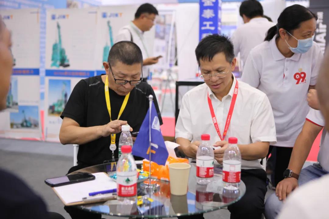 会展期间,公司总经理黎隶万、副总徐峰、徐建成、总工程师李道华等与行业协会专家、桩工机械制造厂商以及基础施工企业用户进行了多方交流。