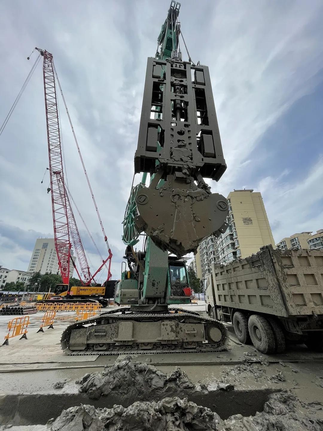因为篇幅关系小编就不一一例举了,在7好号线杨东路站的附近另有两个站头由金泰SG50B与SG60抓斗正在施工。