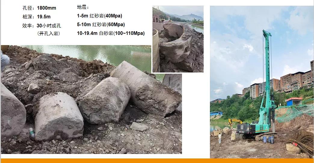 SD40最大钻孔深度102m,最大钻孔直径ф3m,动力头最大输出扭矩400KN·m,今年上半年在四川宣汉南坝龙驹坝大桥工程轻松入岩110Mpa白砂岩而备受瞩目,如此强悍且经济耐用的四连杆机型不知它能“撩”到你吗?