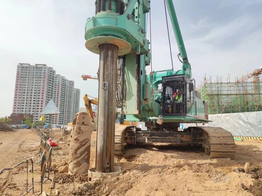 本次参与施工设备为金泰国四中大型旋挖,两台均为定制化矮版旋挖。高度虽然缩短了,但入岩能力丝毫没有打折。孔深30m,9小时一根桩的速度得到了用户的认可。举重若轻,游刃有余的姿态再次向市场展示了金泰旋挖的入岩能力。