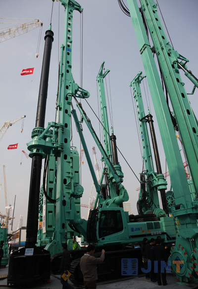 2005年,上海金泰开始生产连续墙液压抓斗,在竞争激烈的市场之中,上海金泰的连续墙液压抓斗的市场占有率已经达到国内第一。总经理林坚在接受采访时表示,“我们始终力求满足用户的需求,把握行业的发展命脉。上海金泰的地下连续墙液压抓斗从小到大,从无到有,走出了一条成功的发展之路。此次展会我们带来了SG46和SG60两种型号,这是当今国内先进、国际领先的产品。其中,SG60已经得到了实际施工的检验,保持了行业领先的地位。”    2010年10月28日,上海金泰工程机械有限公司自主研发制造的我国最大的SG60型连续墙液压抓斗在上海长江西路越江隧道口成功开挖。SG60采用康明斯QSM11-C型发动机,额定功率298 kW,系统最大压力为33 MPa,系统流量2×388 L/min,最大起拔力600 kN,开挖最大深度达100 m。施工现场,SG60开挖宽1.2 m、深58 m的地下连续墙仅用了6 h,高效的工作效率得到施工单位的充分认可。    旋挖钻机也是上海金泰的优势产品之一,林坚介绍说:“SH系列和SD系列多功能钻机均融合了现代液压桩工机械新技术和新工艺,各类技术性能达到或超过国际同类产品先进水平,关键零部件采用国际品牌产品。为满足国内外市场需求,金泰陆续推出了多款多功能钻机,对这些产品的市场前景我们非常有信心。”
