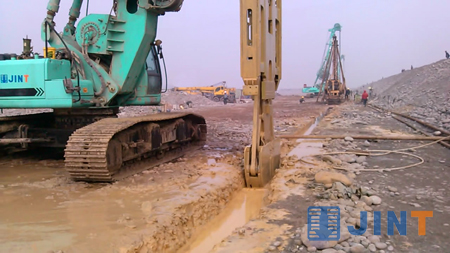 据介绍,安谷水电站是位于大渡河最末一级水电开发项目,是以发电、防洪、航运、灌溉、供水等综合利用的大型水电工程。电站装机772MW,正常蓄水位为398m,设计引用流量2640.9m/s,年均发电量31.44亿千瓦时。该电站为二等大(2)型工程,挡水建筑物洪水标准按100年一遇设计,2000年一遇校核。在安谷电站连续墙防渗重任中,上海金泰公司产品承担了其中80%的工程量。该工程的成槽厚度分别为400mm、600mm和800mm,地质条件较为复杂,卵石密实分布,直径为10—600mm不等,含量为80%—100%,成槽过程中容易塌方,成槽难度很高。金泰产品以其过硬的质量和优异的技术特点,获得业主单位和承建单位青睐和高度评价,成为中流砥柱。在防渗墙成槽过程中,垂直度完全符合设计标准,成槽效率高,设备油耗小,故障率低,为承建方节约了成本,并缩短了工期。