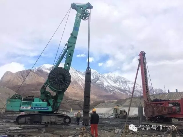 “海拔4033m、坝基覆盖层深度超过424m,防渗墙设计深度158m,成墙面积12.5万㎡,坝基造价4.4亿元……”,这是西藏旁多水利枢纽工程坝基防渗墙的一组设计数据,仅凭这一组数据就可以断定,这是迄今为止中国乃至世界工程史上工况最为复杂且深度最大的防渗墙工程。旁多工程的建成标志着我国在水利防渗墙领域的科研、设计、施工、以及施工机械水平已跃居世界领先行列。同时表明,以快速、高效、低成本的混凝土防渗墙取代传统的“上墙下幕”设计和施工理念已成为一种可能。在这项具有里程碑意义的工程建设中,上海金泰SG液压抓斗在“世界屋脊”的青藏高原同样也创造了自己的历史纪录——成槽深度达到108m。
