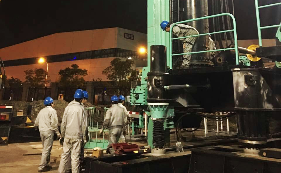 公司装配车间液压班组负责产品液压装配、调试以及新产品厂内试验等工作,为确保展会产品质量过关,两位年轻的车间主任杨东森、陈智奇带着一群20出头的热血青年吃在一线,干在一线,遇到特殊紧急任务,经常工作至深夜。年轻的小伙子们以过硬的技术和认真的态度为设备地顺利运行提供可靠技术保障。眼望一台台新产品驶出装配车间大门,一张张洋溢笑容的脸上露出洁白的牙齿,这是一支青春、乐观,不怕苦、不怕脏、不怕累的队伍。公司生产系统分管领导、总经理助理叶欣每天紧盯现场,奔走在各车间班组,抓进度,催交货,始终与生产系统的干部和员工干在一起。(最大型号旋挖钻机SH46发车)