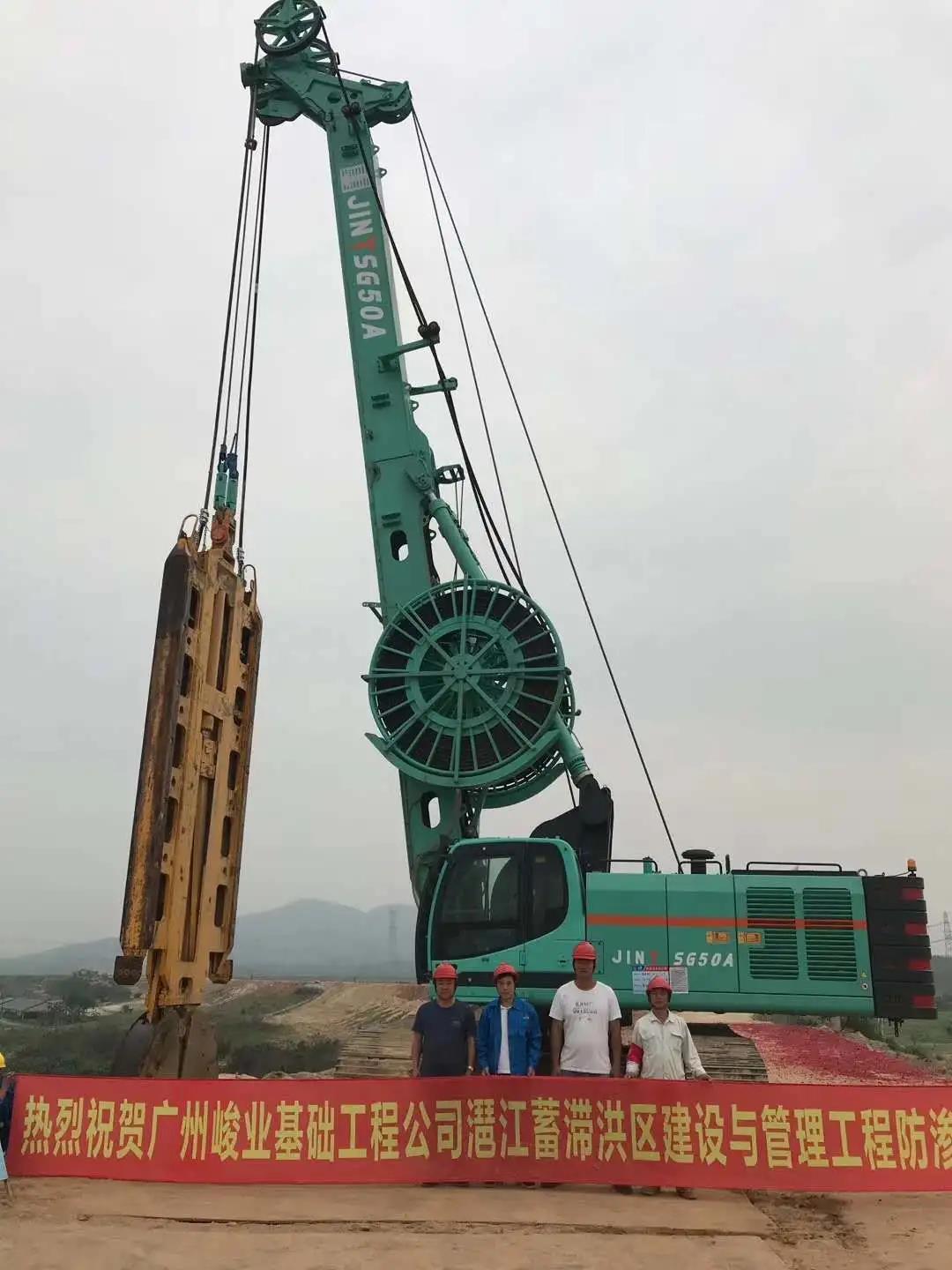 据广州峻业公司王经理介绍,“本项目施工最大难点在于堤围顶部宽度仅约5米难以满足设备施工需求,同时标段施工现场内有3条高压线及1条低压线影响工程施工。