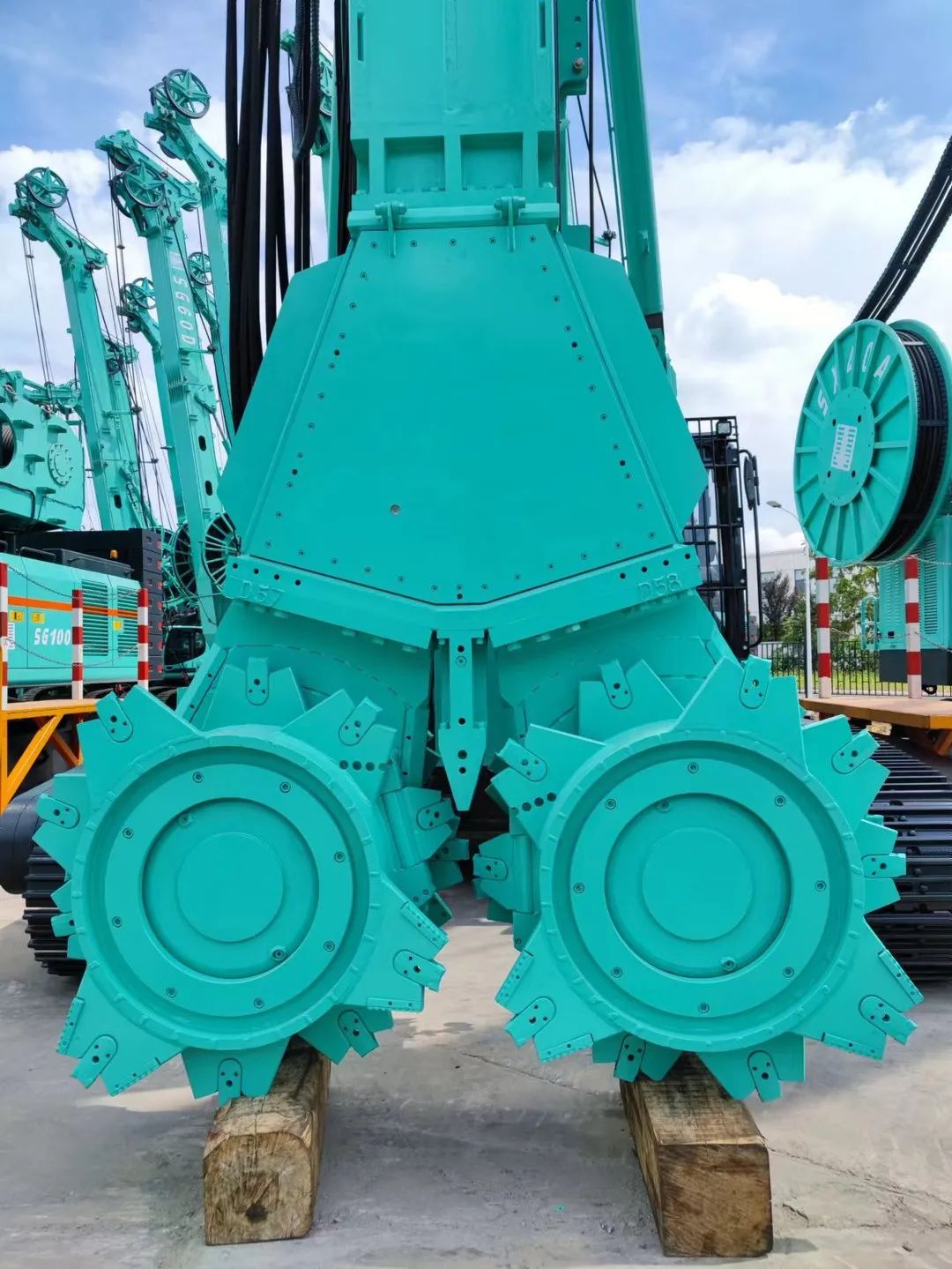 新一代SC55双轮搅拌钻机结合了液压铣槽机的设备技术和深层搅拌技术,与金泰自主研发的主机配套,可在复杂地质条件下完成搅拌城墙施工。
