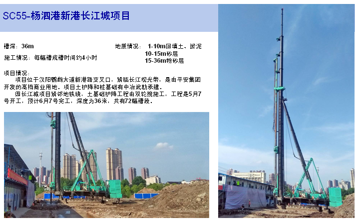 SC55液压铣销搅拌钻机结合了液压铣槽机的设备技术特点和深层搅拌技术,与金泰自主研发的BZ70/80桩架配套,可在复杂地质条件下完成搅拌成墙施工。